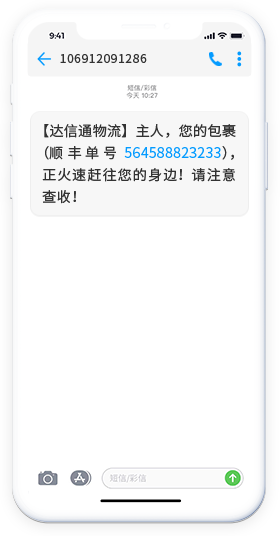 網站/APP將通知、提醒、公告等不含營銷信息的內容通過短信發送給業務用戶。通知短信能夠快速、精準地將重要信息傳達給用戶,避免信息遺漏造成的售后等一系列問題。