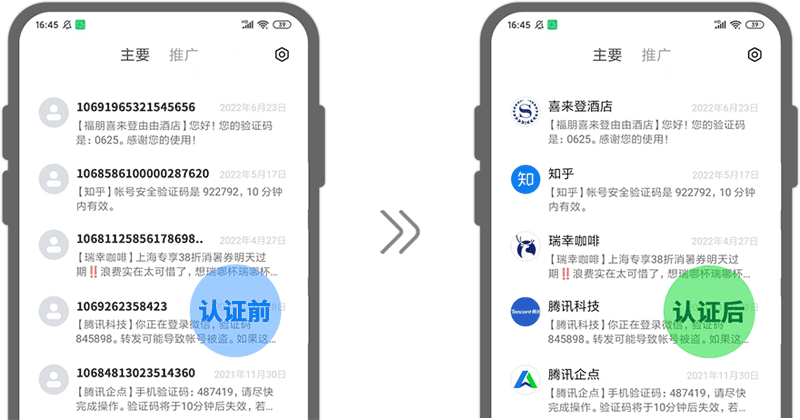 短信品牌經手機廠商二次認證,具有更高的可信度